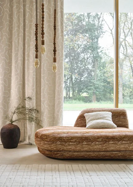 Inspired by Mexico, Escondido fabrics are resolutely unusual with their graphic stripes, harmonious patterns and extremely soft feel. Each piece is unique, with colours that can be combined or displayed on their own, and showcases the uneven beauty of ‘hand-crafted’ style weaves, with jacquard for relief and texture, novelty embroidery-effect downy yarns, and a large, boho-style jacquard diamond motif. Double-use fabrics that hang perfectly as curtains or cover our armchairs and sofas.