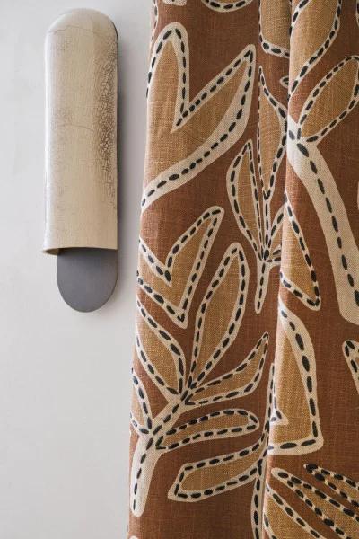 In Padua, a garden holds the legacy of centuries of botanical discoveries. Extraordinary beds and herbariums create a living library in which each plant is classified, observed and studied. This is the spirit of PADUA, a natural fabric in linen and cotton, covered in large leaves which seem to have been sewn on and suggest the detail planning of a herbarium. It is traditionally made by screen-printing on the Guéthary plain, then reembroidered by hand with a raffia-look acrylic yarn. PADUA is a textile tribute to the great variety of plants. It comes in three colorways.